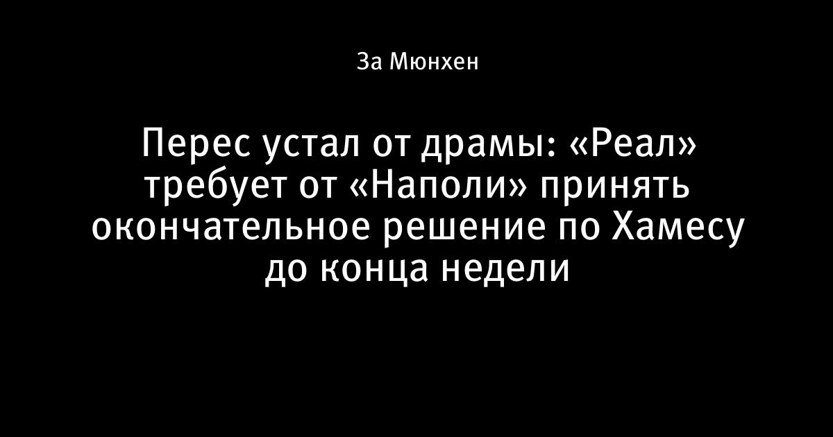 Перес устал от драмы: «Реал» требует от «Наполи» принять окончательное решение по Хамесу до конца недели