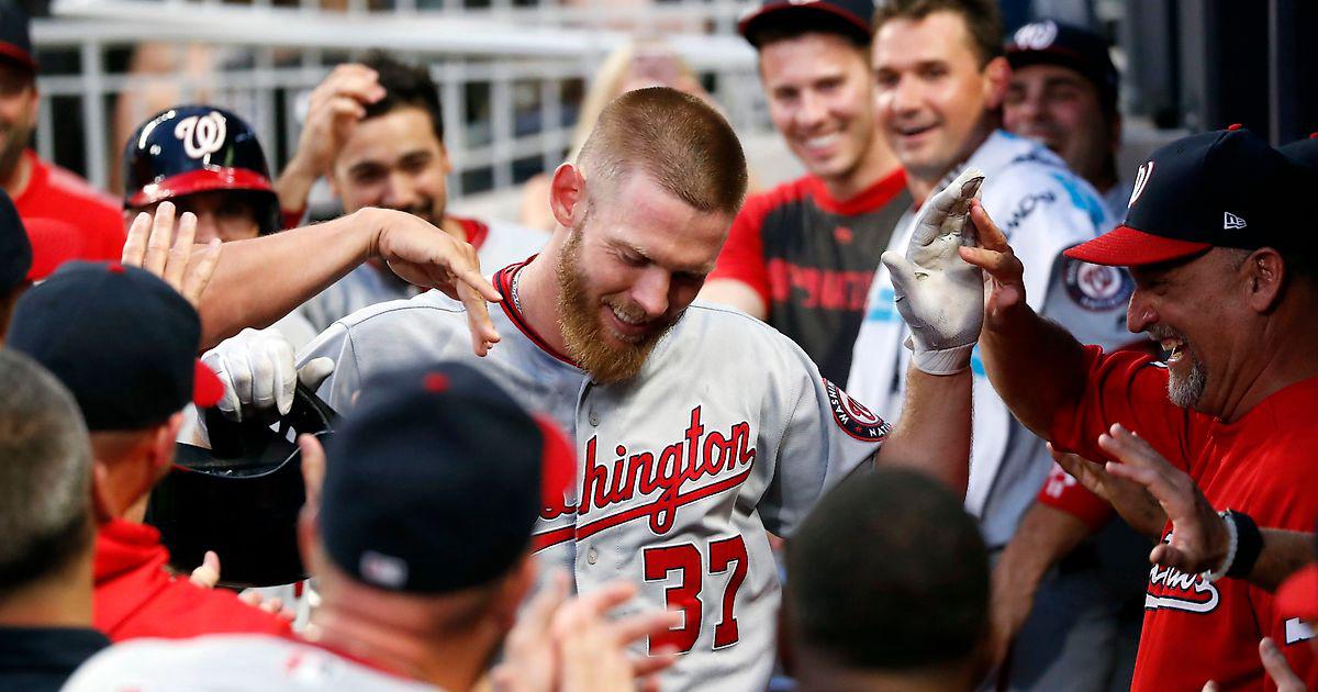 "Атланта Брэйвз"-"Вашингтон Нэшнлз" 4:13.В первом иннинге Фредди Фриман выбил сингл и Роберт Акунья вывел хозяев вперёд.В 3 иннинге Адам Итон выбил трипл (4) и Стефен Страсбург сравнял счёт в матче.Затем Энтони Рендон выбил дабл (26) и Адам Итон вывел гостей вперёд.После ошибки питчера хозяев Энтони Рендон прибежал в дом.Далее Виктор Роблес выбил дабл (16),а Хуан Сото и Курт Сузуки увеличили отрыв гостей.После этого Стефен Страсбург своим хоум-раном (1) отправил Брайана Дозьера и Виктора Роблеса в дом.В 5 иннинге Стефен Страсбург выбил сингл,а Брайан Дозьер и Виктор Роблес прибежали в дом.В 6 иннинге Оззи Албис выбил трипл (4) и Джош Дональдсон уменьшил разницу в счёте.Затем Брайан МакКанн выбил сингл и Оззи Албис прибежал в дом.В 8 иннинге Райан Циммерман выбил дабл (8) и Энтони Рендон снова увеличил разницу в счёте.После аута Курта Сузуки Хуан Сото успел прибежать в дом.Затем Брайан Дозьер выбил сингл и Райан Циммерман прибежал в дом.Хозяева ответили хоум-раном (9) Ника Маркакиса.Питчер гостей Стефен Страсбург (12-4) сделал 7 страйк-аутов,заработал 3 гранд-аута и два флай-аута,выбил хоум-ран и имеет на счету 5 RBI.