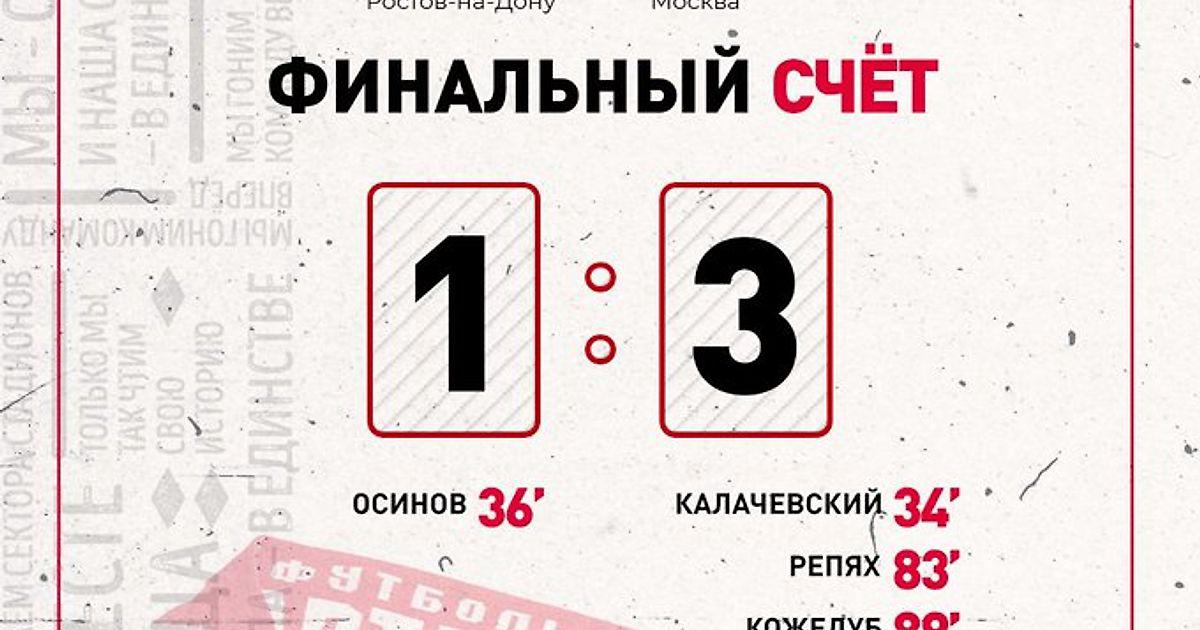 «Спартак» набрал 6 очков и расположился на первом месте в таблице, у «Ростова» 3 очка и седьмая позиция.