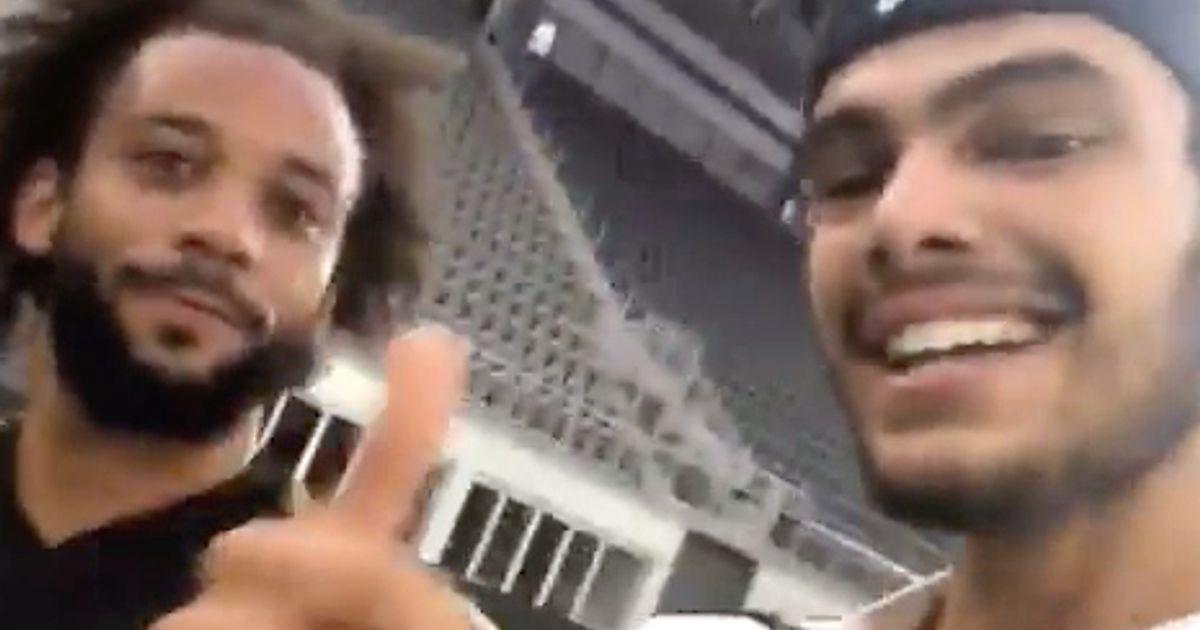 Парень незаметно проник на стадион, где Реал проводил тренировки. Он успел взять автограф у Марсело и сфотографироваться с ним.