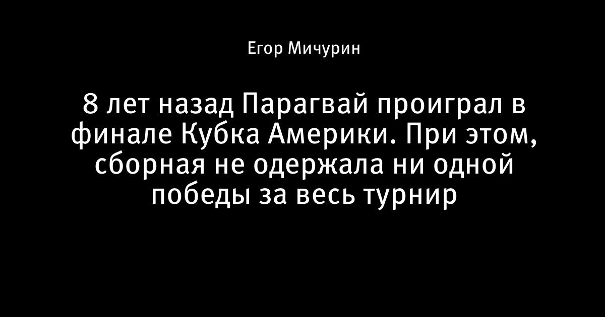 8 лет назад Парагвай проиграл в финале Кубка Америки. При этом, сборная не одержала ни одной победы за весь турнир