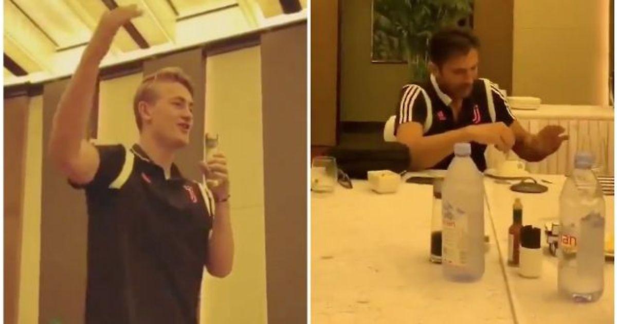 На командном ужине «Ювентуса» прошел обряд посвящения в игроки клуба. Обряд простой: надо забраться на стул и исполнить любую песню.