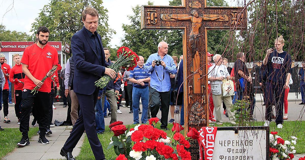 В четверг ряд действующих футболистов "Спартака" и главный тренер команды посетили могилу Черенкова на Троекуровском кладбище в годовщину 60-летия со дня рождения легендарного игрока красно-белых. Главный тренер "Спартака" Олег Кононов рассказал, чему игроки красно-белых должны научиться у Федора Черенкова.