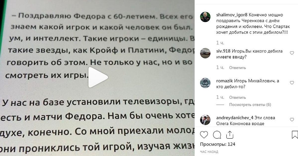 Игорь Михайлович начал жжечь в своем Инстаграме, назвав Кононова «дебилом» за то, что он поздравил «народного футболиста» с Днем Рождения.