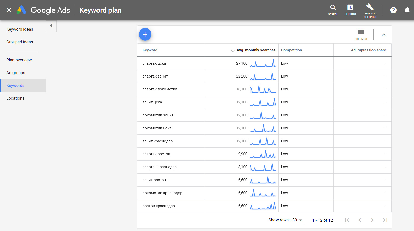 По данным google-поиска матчи с участием Спартака входят в ТОП-3 (среднемесячный показатель за последние 12 месяцев):