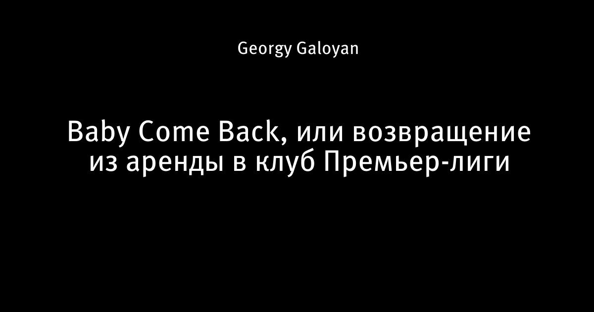 Baby Come Back, или возвращение из аренды в клуб Премьер-лиги