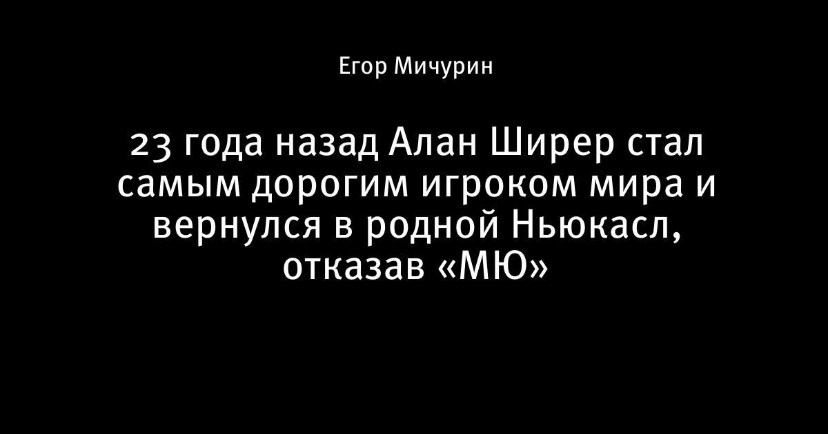 23 года назад Алан Ширер стал самым дорогим игроком мира и вернулся в родной Ньюкасл, отказав «МЮ»