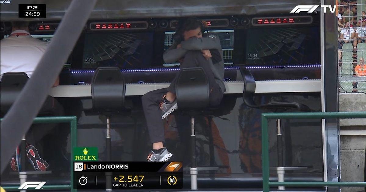Вторая практика на Гран-при Венгрии прошла невероятно весело для гонщика «Макларена» Ландо Норриса — он успел проехать только шесть кругов и почти не опробовал болид в дождевых условиях. Все из-за утечки гидравлической жидкости: его болид припарковали в боксах на технические проверки.