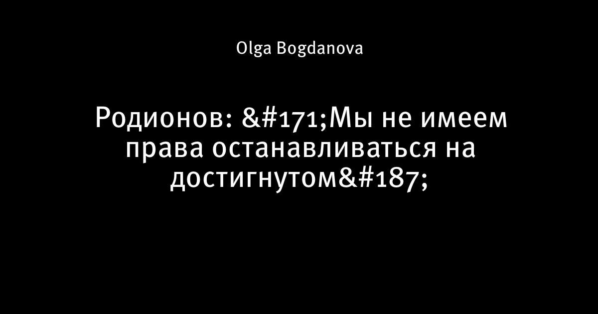 Родионов: «Мы не имеем права останавливаться на достигнутом»