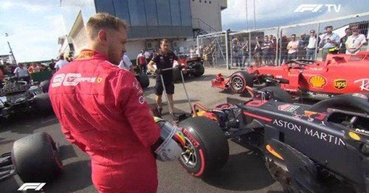 Феттель снова изучал болид соперника после финиша заезда. Фанаты выстебали Себа четырьмя картинками