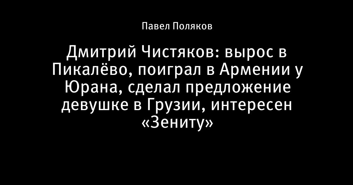Дмитрий Чистяков: вырос в Пикалёво, поиграл в Армении у Юрана, сделал предложение девушке в Грузии, интересен «Зениту»