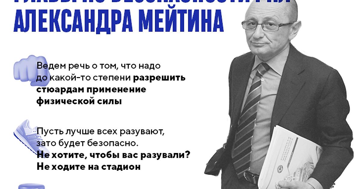 • Мейтин за то, чтобы полиции на трибунах было меньше, он давно призывает заменить ОМОН сотрудниками ЧОПа.