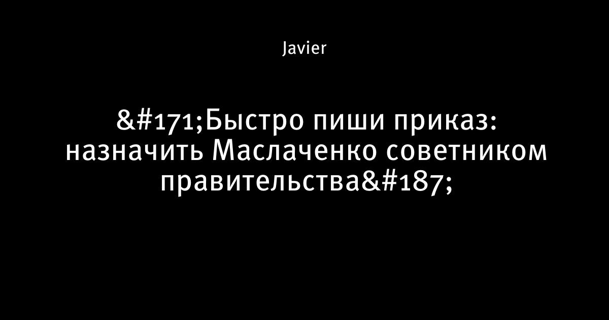 «Быстро пиши приказ: назначить Маслаченко советником правительства»