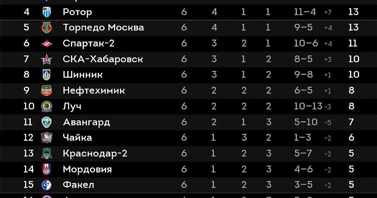 СКА-Хабаровск - Чертаново Луч - Торпедо Енисей - Нефтехимик Томь - Ротор Мордовия - Балтика Нижний Новгород - Факел Текстильщик - Шинник Авангард - Спартак-2 Химки - Краснодар-2 Армавир - Чайка