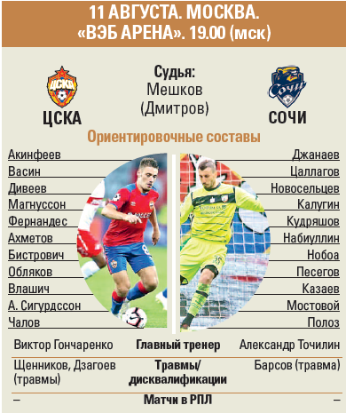 Это случилось на финише сезона-2016/17, когда были поочередно обыграны «Амкар», «Арсенал», «Рубин» и «Анжи». Что ж, в воскресенье Гончаренко может повторить свой армейский рекорд. После побед над «Оренбургом» (2:1), «Локомотивом» (1:0) и «Рубином» (1:0) ЦСКА принимает на своем поле дебютанта премьер-лиги «Сочи», за который дебютирует очередной экс-зенитовец Кристиан Нобоа. Может, он вдохновит южан на первый в их истории гол в РПЛ? Тоже ведь интрига.