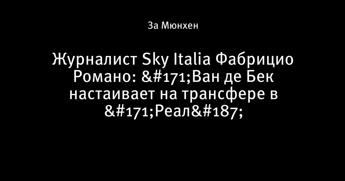 Журналист Sky Italia Фабрицио Романо: «Ван де Бек настаивает на трансфере в «Реал»
