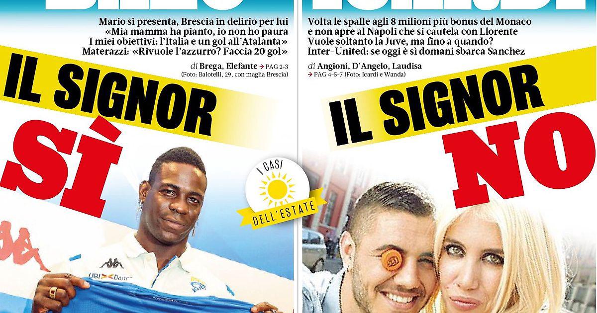 Бало – синьор «да», Икарди – синьор «нет». Заголовки Gazzetta, TuttoSport и Corriere за 20 августа