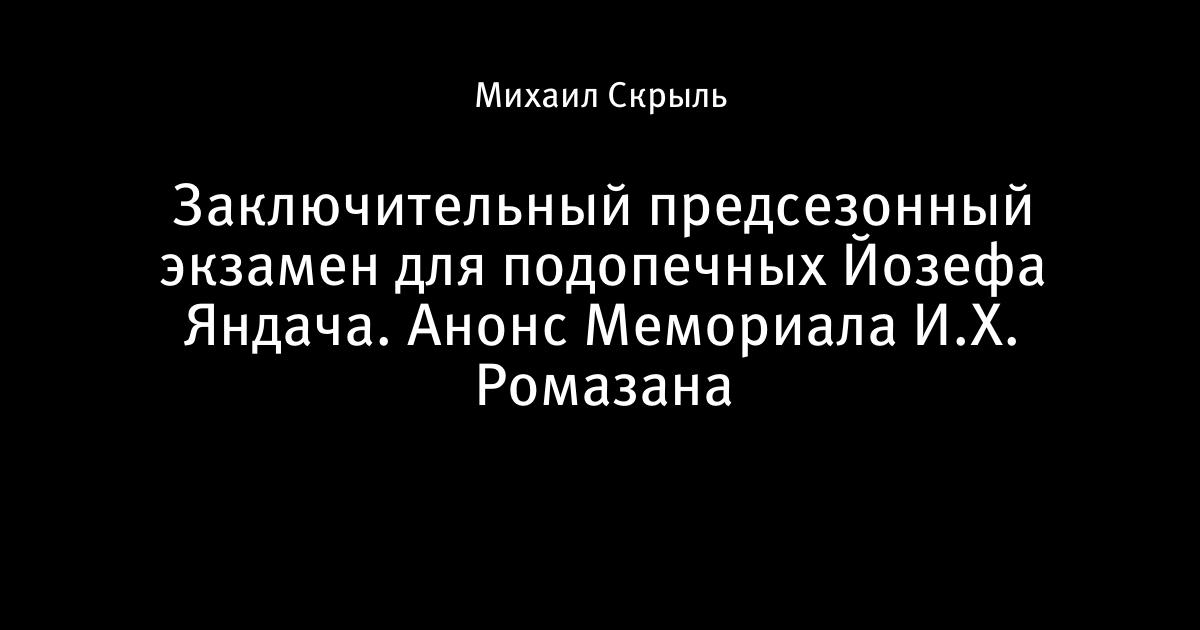 Заключительный предсезонный экзамен для подопечных Йозефа Яндача. Анонс Мемориала И.Х. Ромазана