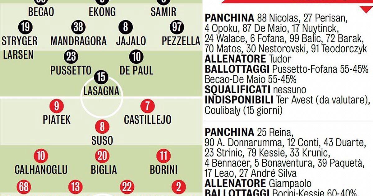 Обновленная информация: Биглия получил травму. Чалханоглу будет реджистой, Пакета выйдет левым меццалой.