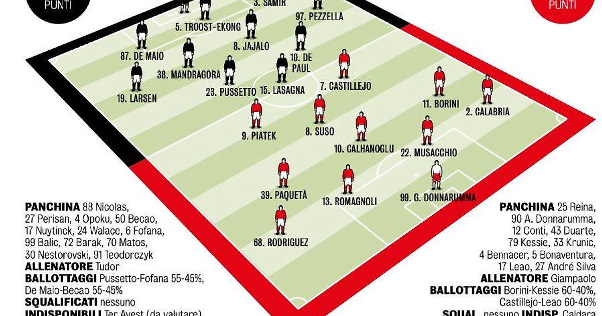 Вероятные составы на матч «Удинезе» - «Милан» от La Gazzetta dello Sport