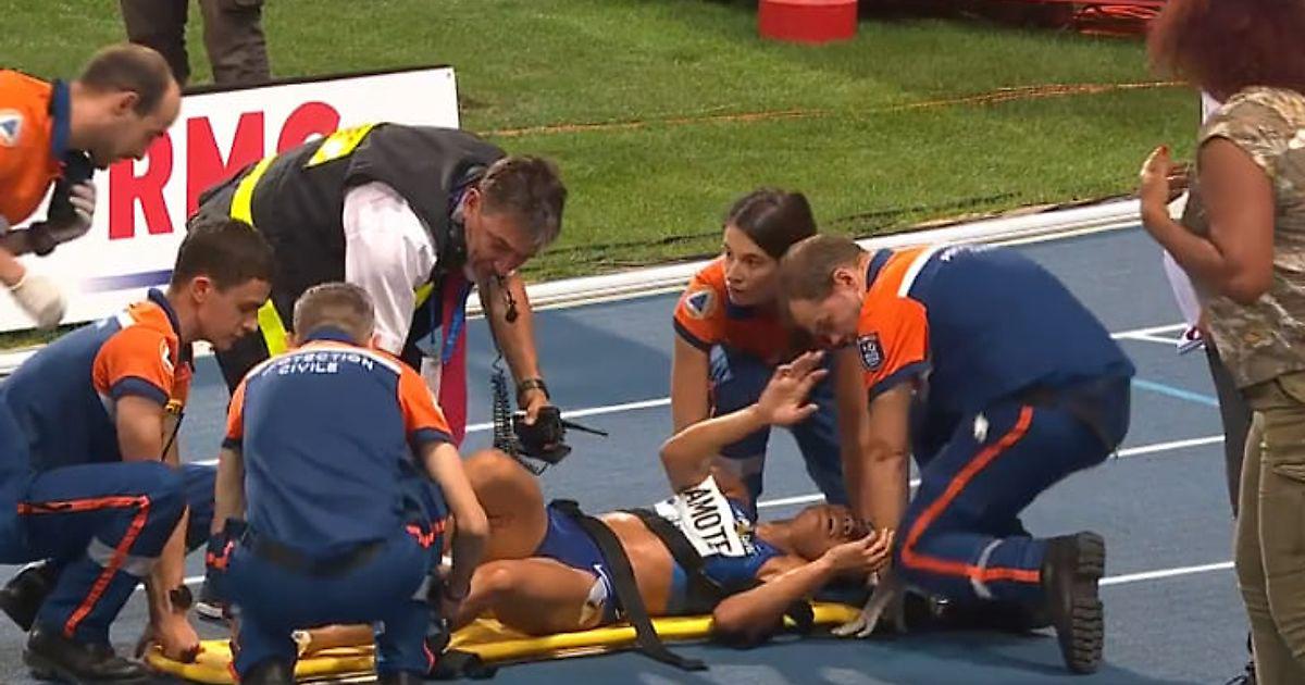 Не сразу подоспевшая медбригада переложила Ламоте на носилки – здесь видео, как девушку унесли под овацию.