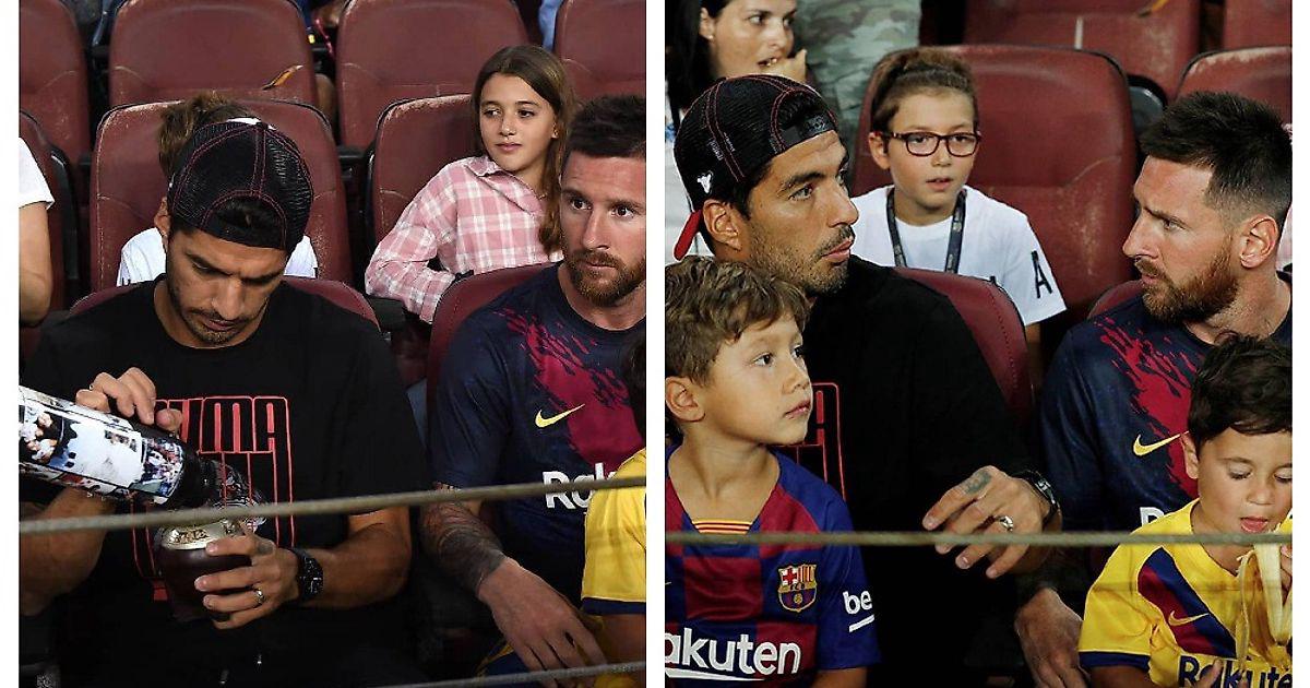 😉 Болельщики дня. Месси и Суарес пришли поболеть за «Барсу»