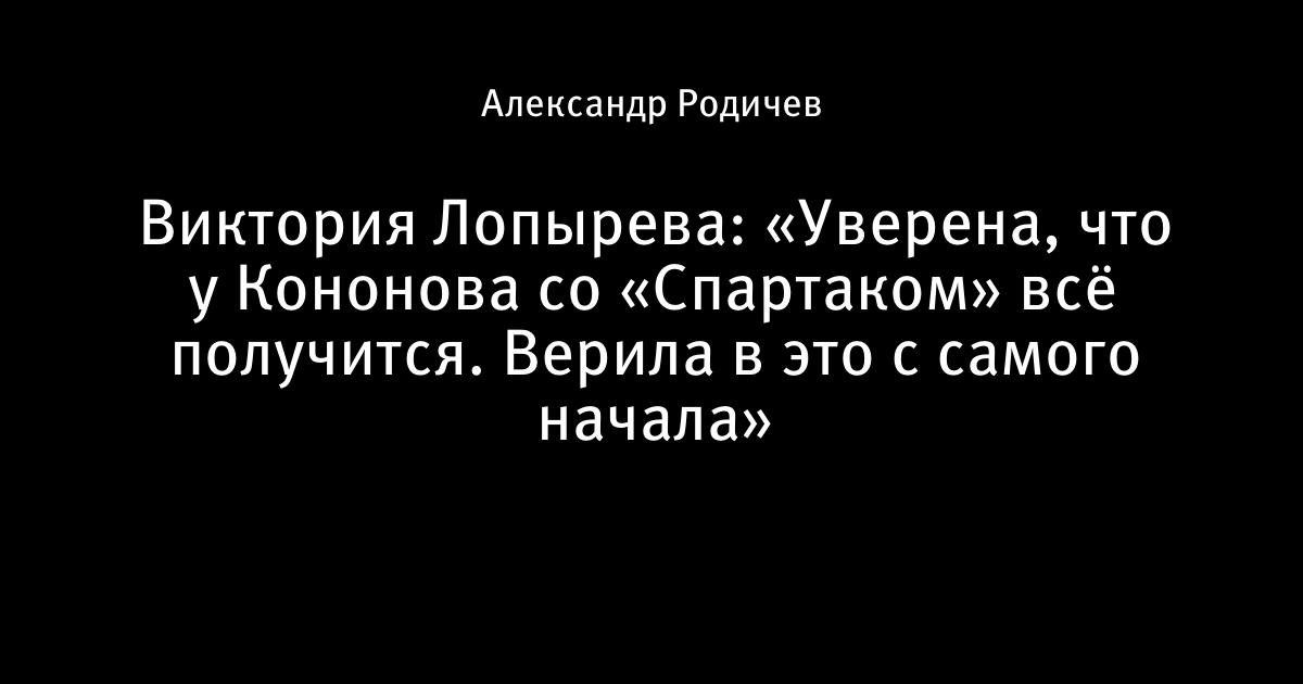 Виктория Лопырева: «Уверена, что у Кононова со «Спартаком» всё получится. Верила в это с самого начала»