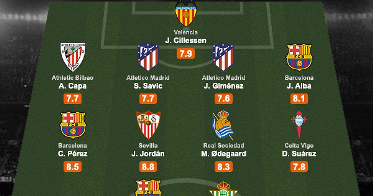 🇪🇸 LaLiga Team of the Week -- @FCBarcelona forward Antoine Griezmann put in a ⭐️ showing against Real Betis to feature@JasperCillessen@AnderCapa