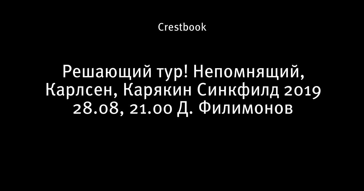 Решающий тур! Непомнящий, Карлсен, Карякин 👑 Синкфилд 2019 ⏰ 28.08, 21.00 🎤 Д. Филимонов