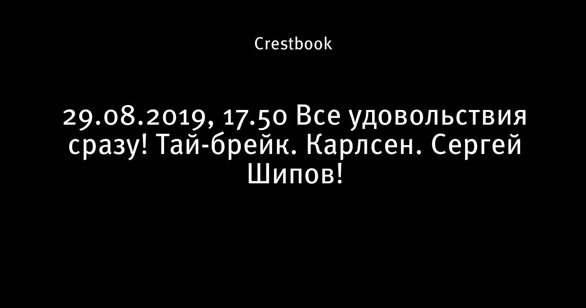 🔥 29.08.2019, 17.50 🔥 Все удовольствия сразу! Тай-брейк. Карлсен. Сергей Шипов!