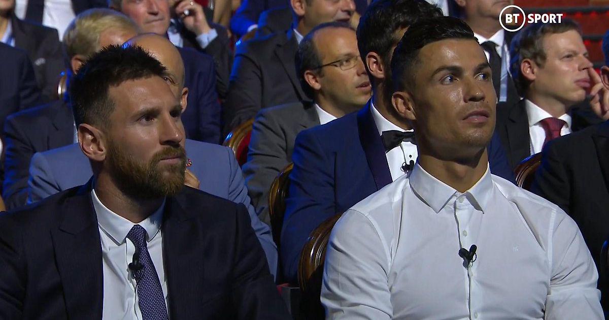 Зал переваривал слова француза, а Месси и Роналду слушали вот с такими лицами.