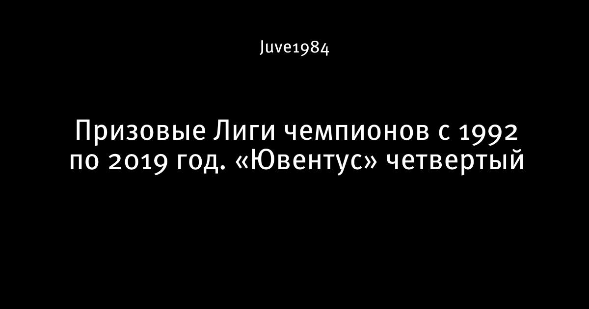 Призовые Лиги чемпионов с 1992 по 2019 год. «Ювентус» четвертый