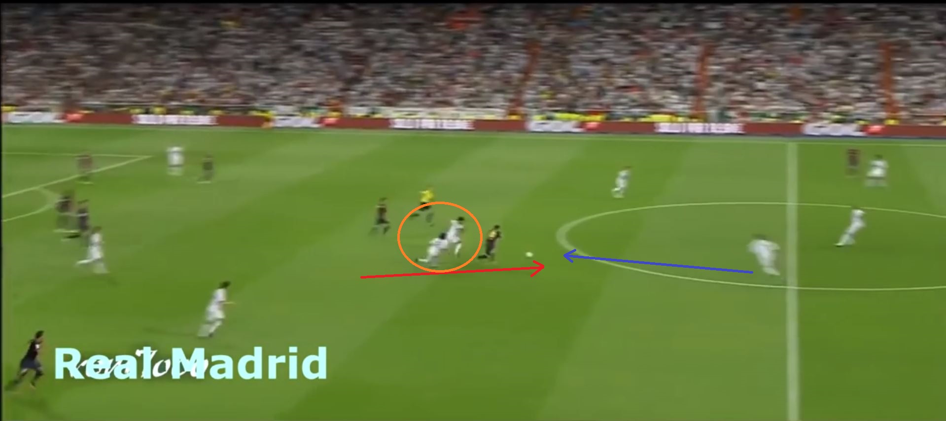 Как в этом эпизоде. Месси успешно обыграл двух соперников, но даже ОН не смог оценить расположение всех футболистов на поле, чем и воспользовался Рамос. Моментально сократив дистанцию в тот момент, когда Месси был сосредоточен на мяче.