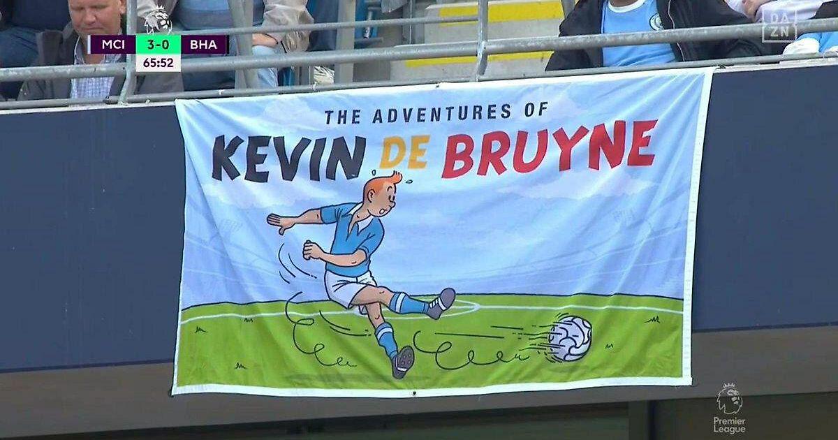 Болельщики сравнивают Де Брюйне с Тинтином. Есть баннеры, афиши и даже футболки