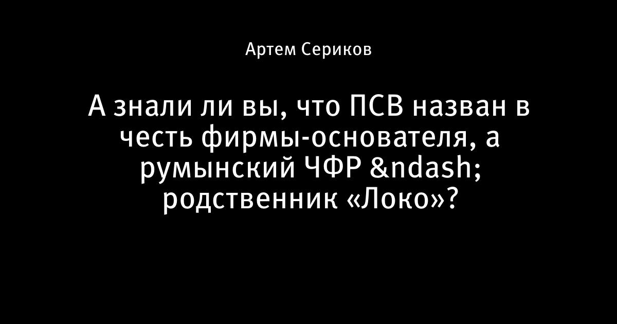А знали ли вы, что ПСВ назван в честь фирмы-основателя, а румынский ЧФР – родственник «Локо»?