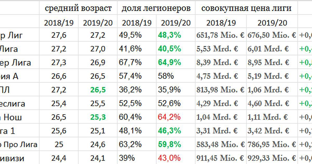 РПЛ помолодела и подорожала — смотрим на топ-10 лиг