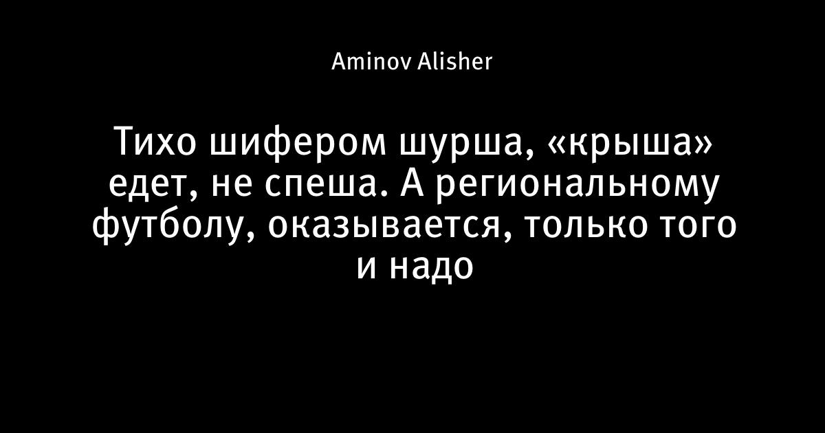 Тихо шифером шурша, «крыша» едет, не спеша. А региональному футболу, оказывается, только того и надо