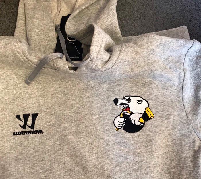 Машинная вышивка логотипа ХК Трактор на толстовке