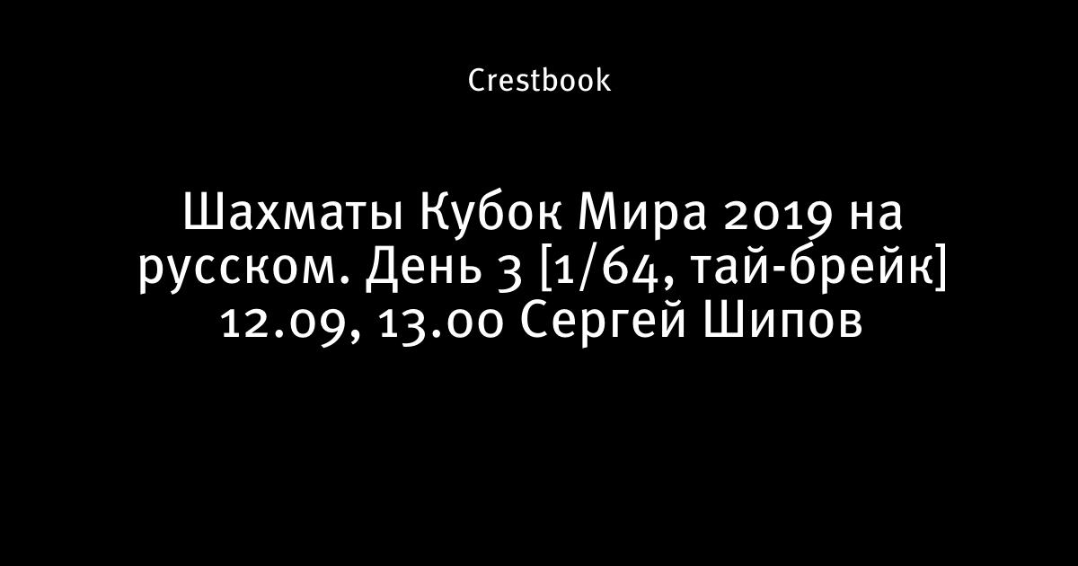 Шахматы 🏆 Кубок Мира 2019 🇷🇺 на русском. День 3 [1/64, тай-брейк] ⏰ 12.09, 13.00 🎤 Сергей Шипов