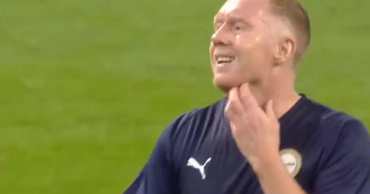 Легендарный полузащитник «Манчестер Юнайтед» и сборной Англии Пол Скоулз принял участие в прощальном матче бельгийского центрбека Венсана Компани, в котором Легенды АПЛ и Легенды «Манчестер Сити» расписали мировую ничью (2:2).