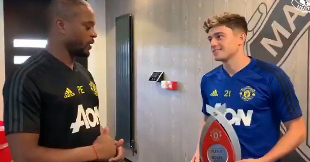 Патрис Эвра вручил Дэниелу Джеймсу приз «Лучшему игроку месяца», сопроводив это особенными словами для полузащитника «Юнайтед».