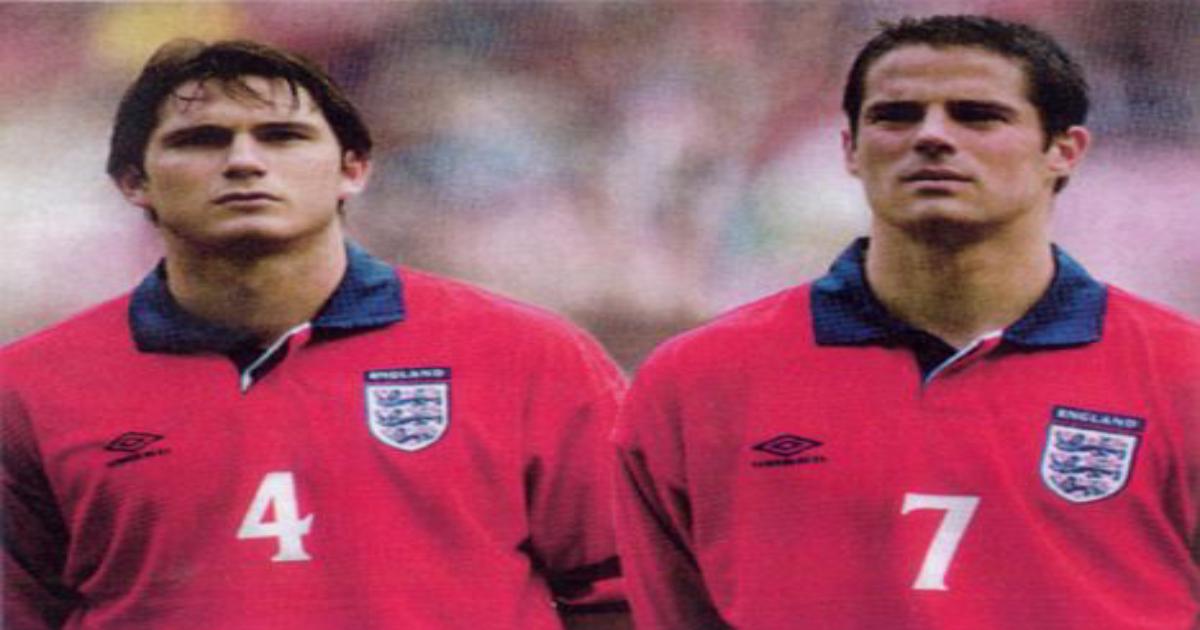 Фрэнк Лэмпард дебютировал в сборной Англии 10 октября 1999 года в матче проитв Бельгии. На снимке рядом с Фрэнком его двоюродный брат Джейми Реднапп.