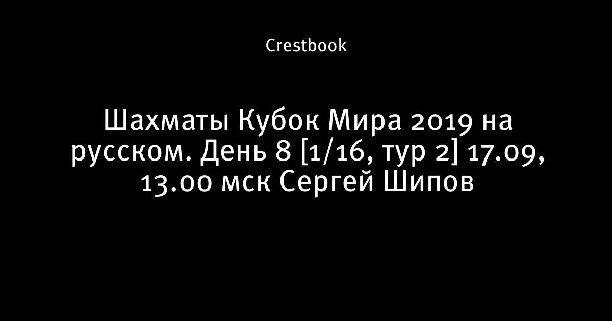 Шахматы 🏆 Кубок Мира 2019 🇷🇺 на русском. День 8 [1/16, тур 2] ⏰ 17.09, 13.00 мск 🎤 Сергей Шипов