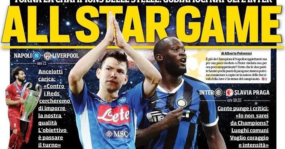 Игра всех звёзд. Заголовки Gazzetta, TuttoSport и Corriere за 17 сентября