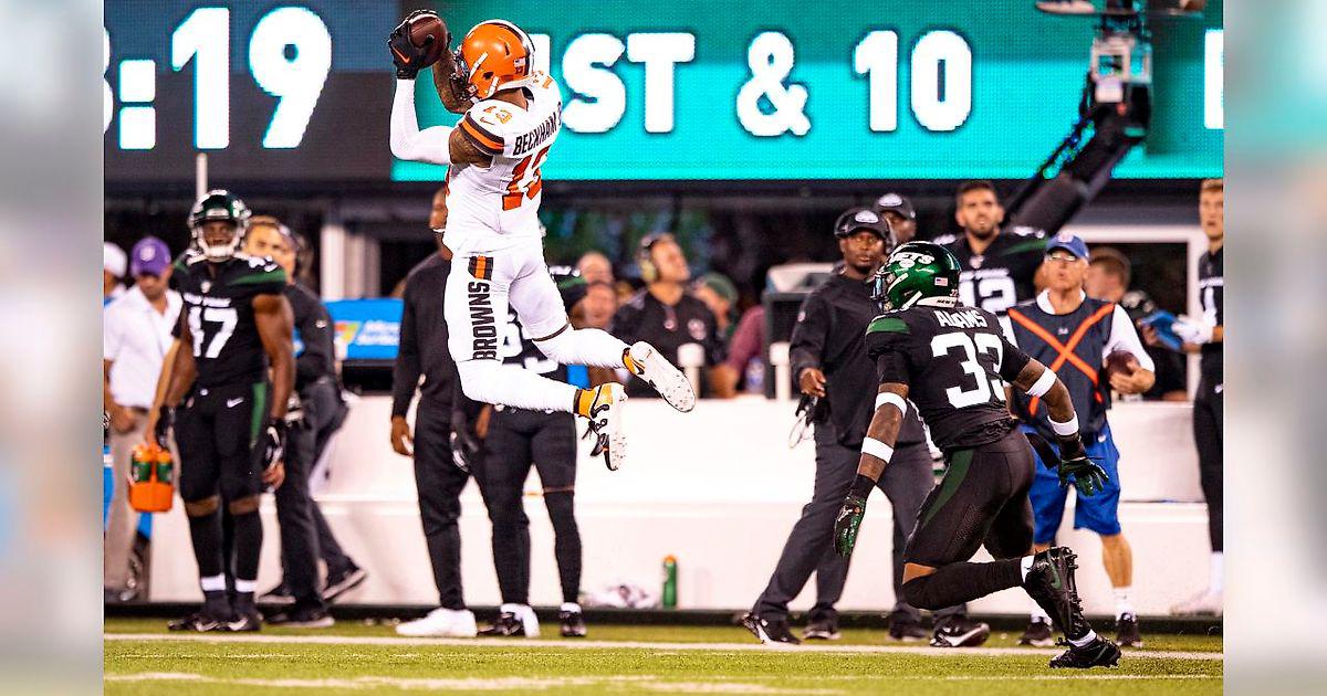 "Нью-Йорк Джетс"-"Кливленд Браунс" 3:23.Квотербек гостей Бэйкер Мэйфилд заработал 325 ярдов,один тачдаун и пропустил один перехват.Ресивер Оделл Бэкхэм имеет в активе 161 ярд.Квотербек хозяев Люк Фолк заработал 198 ярдов.