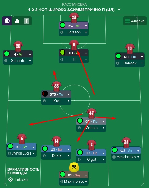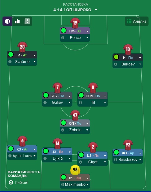 Понсе бы сыграл в атаке. Готов был бы выйти Крал, но только опорником, при этом Зобнина в случае необходимости можно будет отправить выше на место замененного игрока, условного Гулиева. Ларссон сможет освежить игру заменив либо Понсе в атаке, либо Бакаева на фланге. Ну и Умяров третий запасной, которого я бы видел плановым выходом на замену.