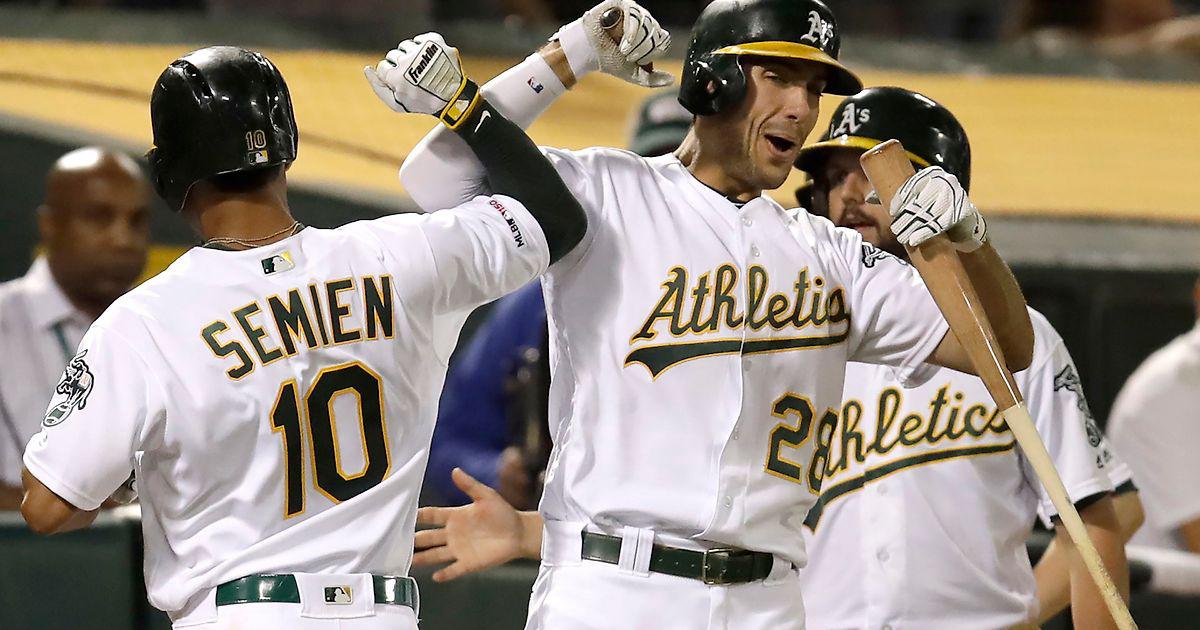 "Окленд Атлетикс"-"Техас Рейнджерс" 12:3.В первом иннинге хозяева набрали сразу 7 очков и держали нити игры в своих руках.Мэтт Олсон выбил сингл и Маркус Семьен вывел хозяев вперёд.После аута Марка Каньи Мэтт Олсон успел прибежать в дом.Затем Рамон Лауреано выбил дабл (29) и Марк Канья прибежал в дом.После аута Шелдона Нойса Рамон Лауреано увеличил отрыв хозяев.Далее Джош Фегли выбил сингл и Крис Дэвис прибежал в дом.После этого Мэтт Чапман выбил сингл,а Чад Пиндер и Джош Фегли принесли хозяевам ещё два очка.Во втором иннинге Шелдон Нойс выбил сингл и Марк Канья прибежал в дом.После ошибки питчера гостей Рамон Лауреано прибежал в дом.В 5 иннинге Маркус Семьен выбил хоум-ран (32).Затем Марк Канья выбил хоум-ран (26).В 6 иннинге Элвис Андрус выббил хоум-ран (11).Затем Данни Сантана выбил хоум-ран (26).В 8 иннинге Ник Солак выбил хоум-ран (5).Хозяева ответили синглом Джоша Фегли и забеганием Чада Пиндера.Питчер хозяев Шон Манаи (3-0) сделал 4 страйк-аута,заработал 6 гранд-аутов и 3 флай-аута.