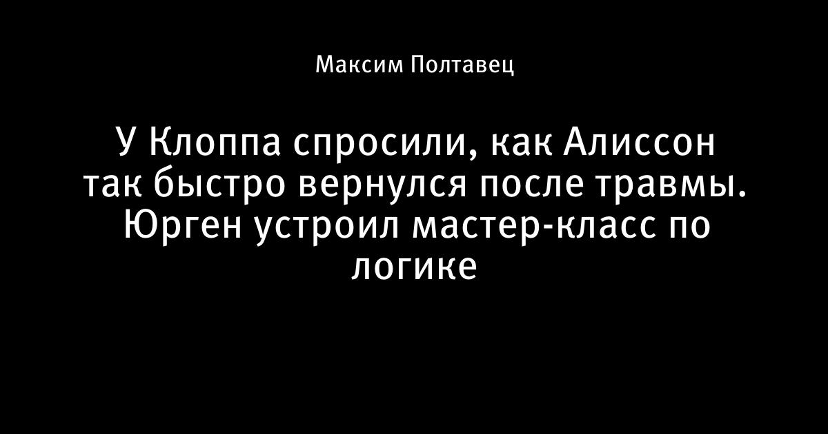 У Клоппа спросили, как Алиссон так быстро вернулся после травмы. Юрген устроил мастер-класс по логике