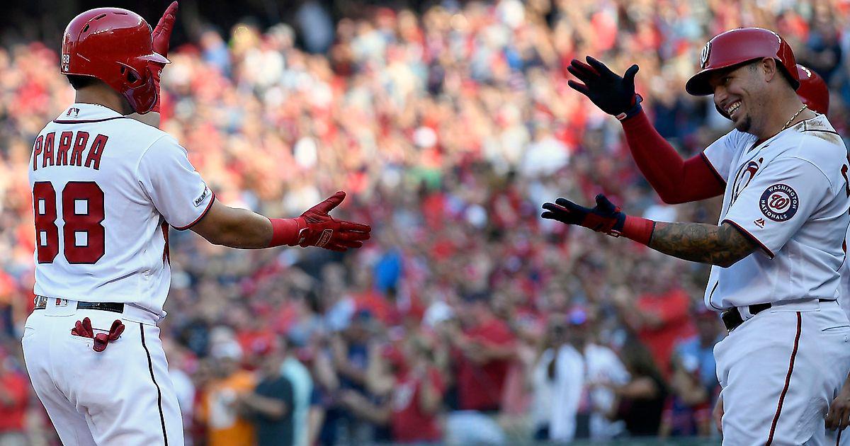 "Вашингтон Нэшнлз"-"Кливленд Индианс" 10:7.Хозяева во втором иннинге набрали сразу 9 очков и смогли дотянуть до победы.Во втором иннинге Патрик Корбин выбил сингл и Райан Циммерман вывел хозяев вперёд.Затем Адам Итон выбил сингл и Херардо Парра прибежал в дом.Далее Энтони Рендон выбил дабл (44),а Ян Гомес и Патрик Корбин увеличили отрыв хозяев.После этого Асдрубал Кабрера выбил сингл и Адам Итон прибежал в дом.Вскоре Херардо Парра выбил гранд-слэм (9),а Энтони Рендон с Хуаном Сото и Асдрубалом Кабрерой прибежали в дом.В 4 иннинге Джордан Луплоу выбил хоум-ран (14).Затем Эрик Хаасе своим хоум-раном (1) отправил Франмила Рейеса и Ю Чанга в дом.Хозяева ответили синглом Райана Циммермана и забеганием Хуана Сото.В 5 иннинге Франмил Рейес своим хоум-раном (37) отправил Джордана Луплоу в дом.В 9 иннинге Джордан Луплоу выбил хоум-ран (15).Реливер хозяев Дани эль Хадсон (9-3) сделал два страйк-аута,заработал один гранд-аут.