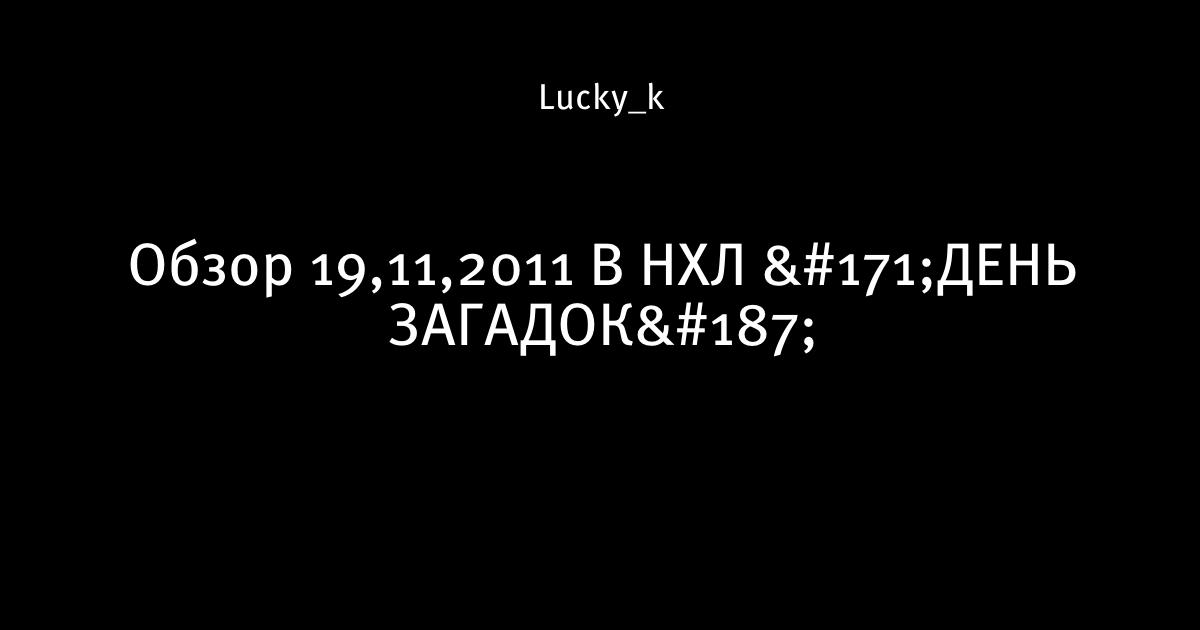 Обзор 19,11,2011 В НХЛ «ДЕНЬ ЗАГАДОК»